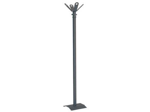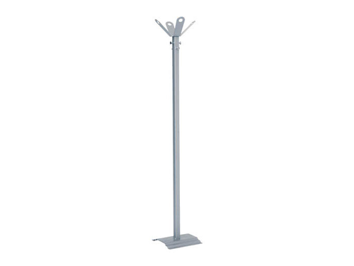 Orfeo coat stand, made of painted metal, available in three different colours: black, grey, tiger grey. It comes with 4 clothes hanger arms. Ideal for trade fair stands or corporate events.